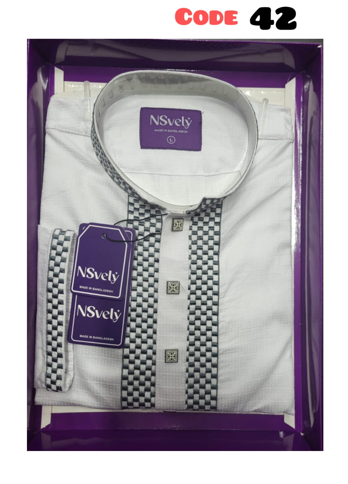 Smart Fancy Cotton Design Panjabi – (WHITE)42 শুধুমাত্র XL 44 সাইজ হবে
