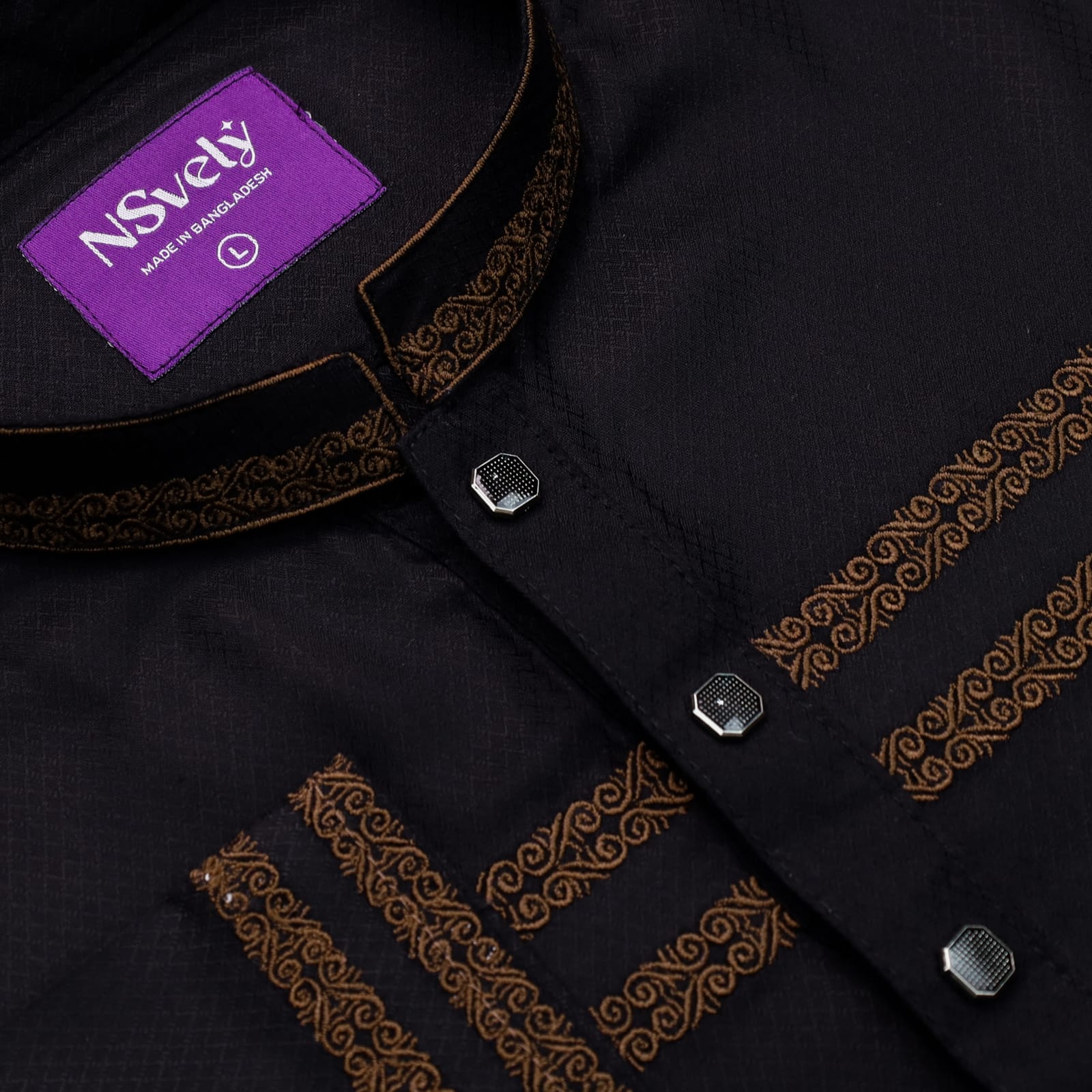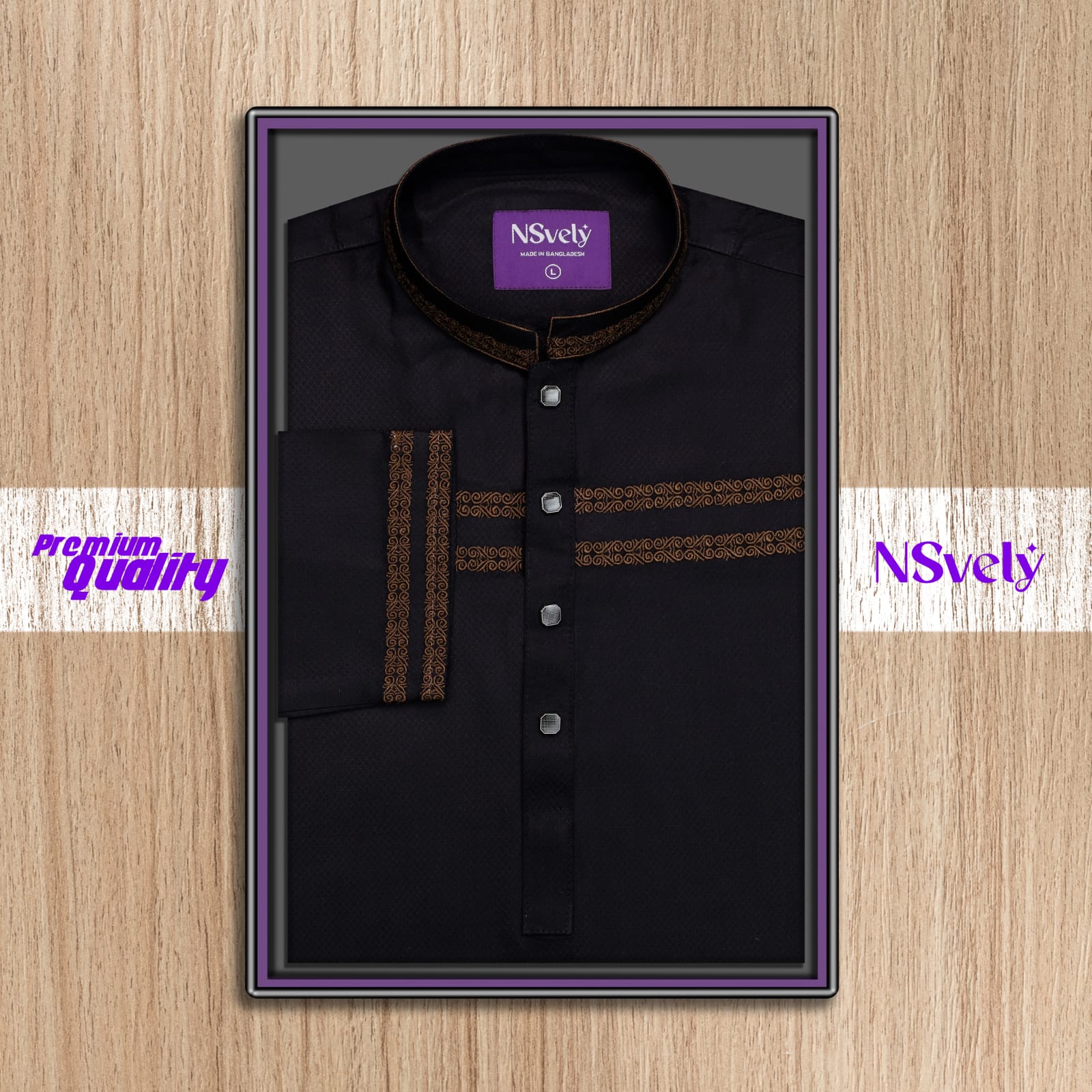 Premium Embroidery Semi Fit Panjabi - [BLACK] 29