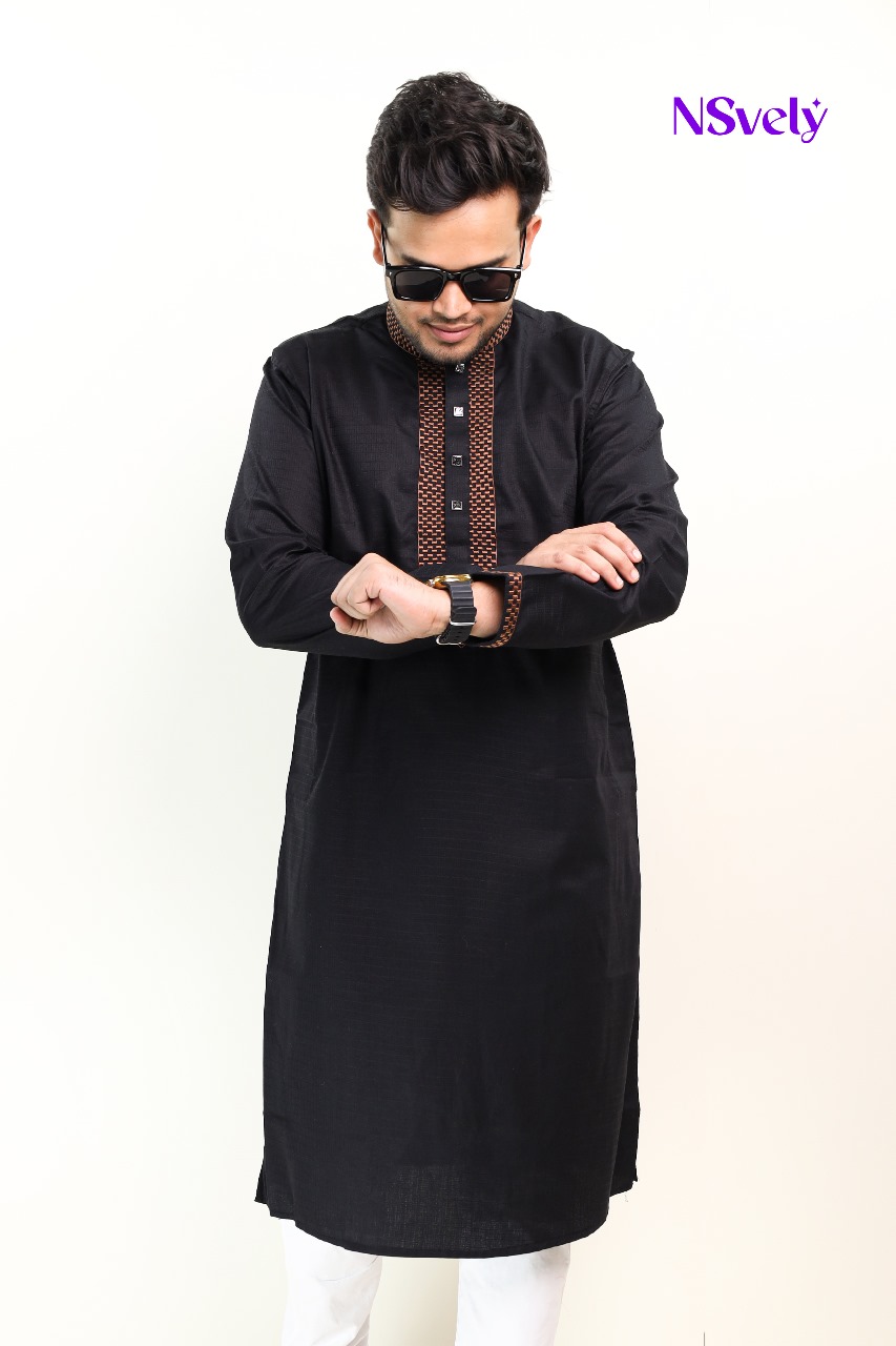 Smart Fancy Cotton Design Panjabi – (BLACK) 44( M 40 এই সাইজ স্টক শেষ )