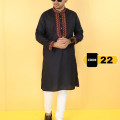Premium Embroidery Semi Fit Panjabi - [BLACK] 29