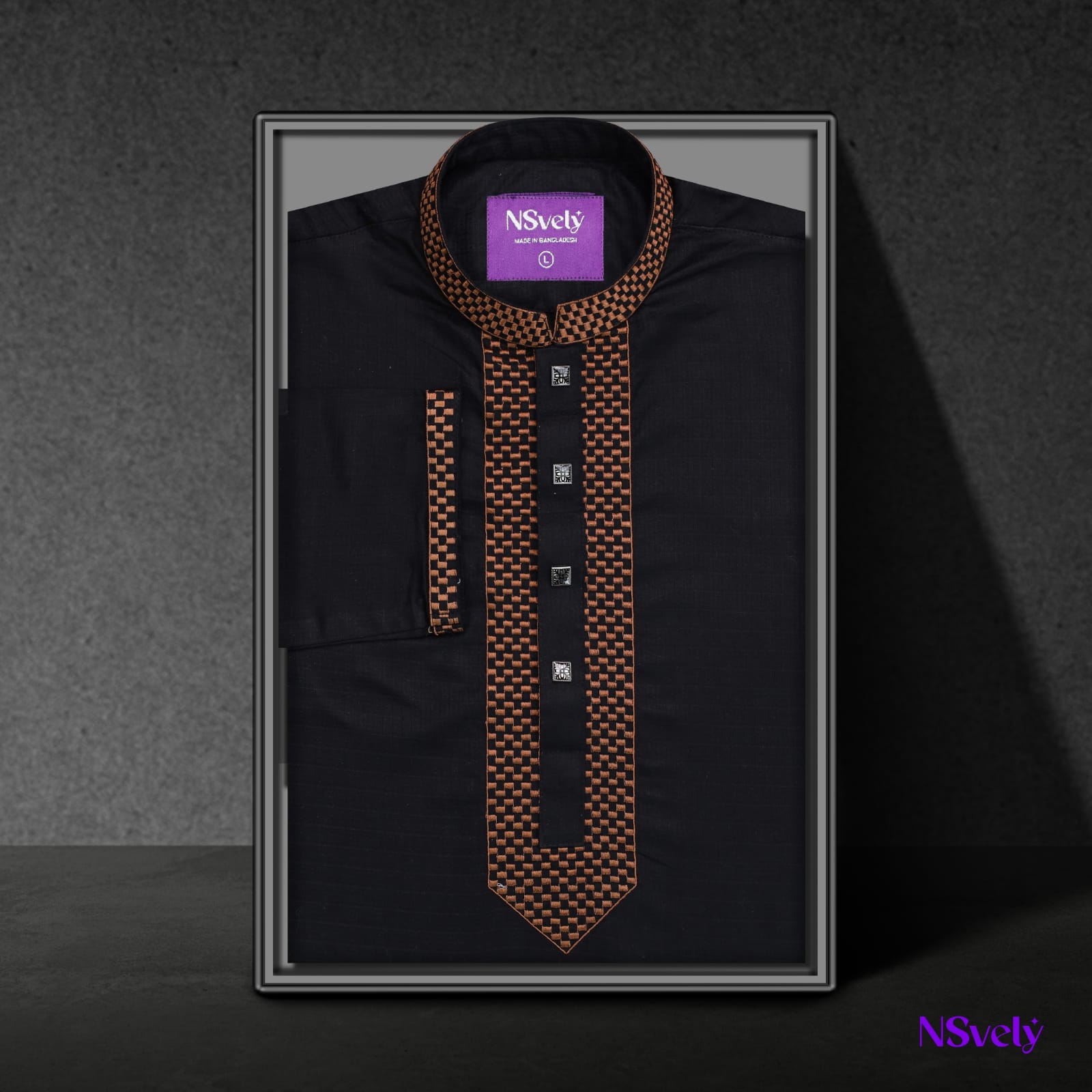 Smart Fancy Cotton Design Panjabi – (BLACK) 44 শুধুমাত্র XL 44 সাইজ হবে