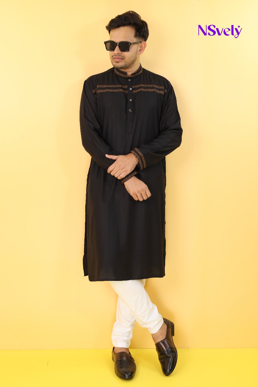 Premium Embroidery Semi Fit Panjabi - [BLACK] 29