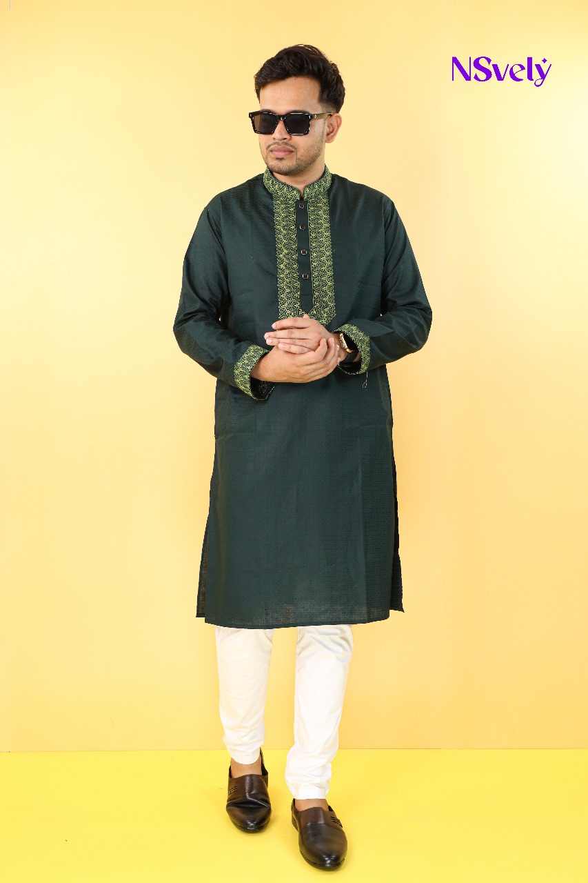 Sea Green Colour Gorgeous Desing Panjabi with Elegant Embroidered[23]( M 40 এই সাইজ স্টক শেষ )