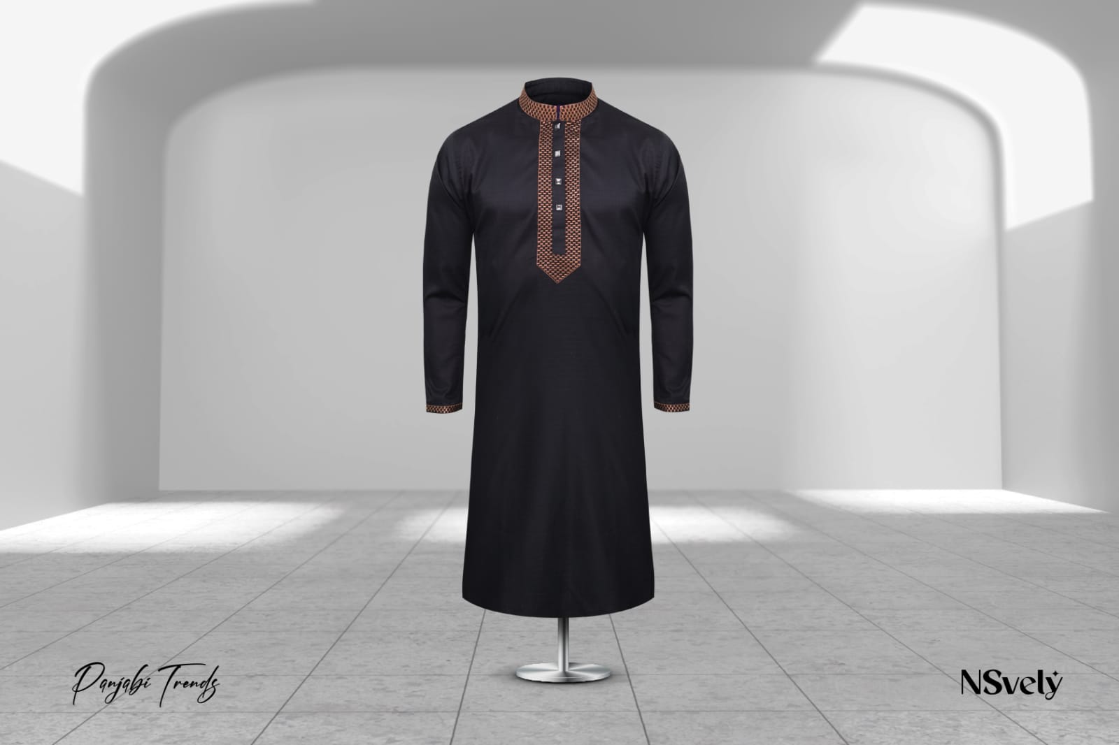 Premium Embroidery Semi Fit Panjabi - [BLACK] 29